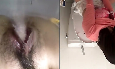 Perverted Pinkhead Japanese babe flashing her pussy in public and humps in toilet with a stranger