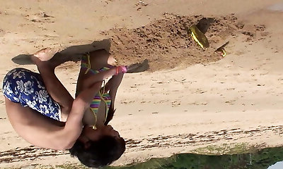 Frisky couple strip and fuck on the beach hardcore