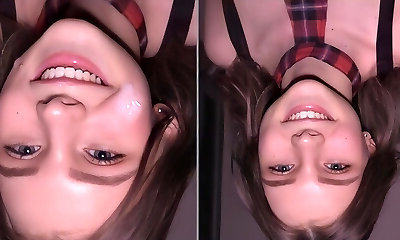 Beautiful teen brunette with a thin body gives a deep throat blowjob and then squirts form fingerblasting