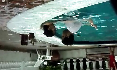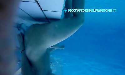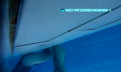 cette jolie nymphe montre ses seins xxl sous l'eau dans la piscine pendant que la webcam la voit!