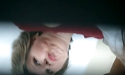 belle fille étrangère blanche en chaussures à talons hauts filmée en train de pisser dans les toilettes