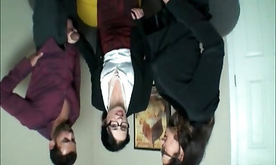 India Summer tears up with nerdy stud while blindfolded mustached fellow seeks for them