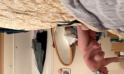 Crazy hidden webcam vid of my own slim chick flashing her bum in the bedroom