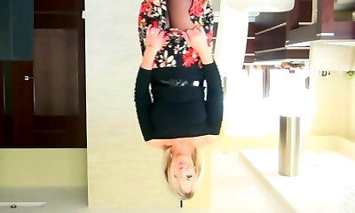 Mature blonde in white stockings fucks cock in cootchie