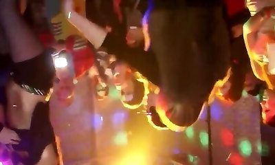 Ultra-kinky girls at the night club dancing and showing for the crowd