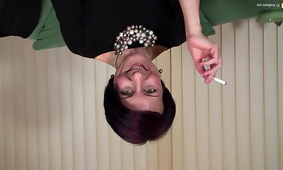 Ravishing mature babe with smooth-shaven pussy rubbing it in an robust solo shoot