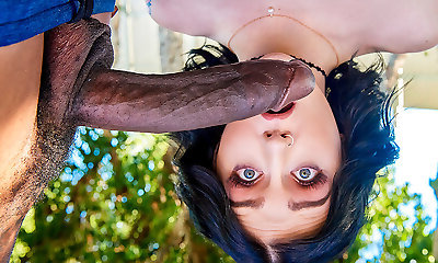 Sizzling redhead slut greedy for BBC sex enjoys slurping her friend's huge monstercock and then asks him to destroy her pussy